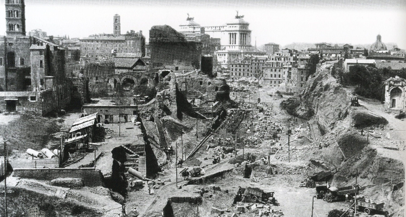Sventramenti e distruzioni in varie zone, soprattutto nel Foro.