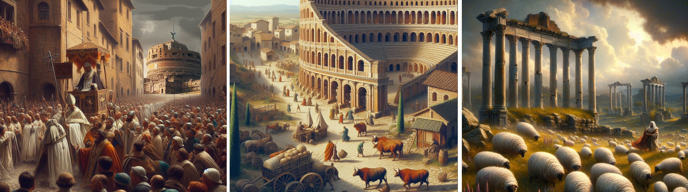 Come ancora oggi possiamo constatare non c'è chiesa a Roma che non abbia colonne o marmi sottratti agli edifici antichi. Con la prolungata assenza di epidemie la popolazione crebbe considerevolmente, ma tutti gli abitanti di Roma ancora non sarebbero riusciti a riempire per metà gli spalti del Circo Massimo.