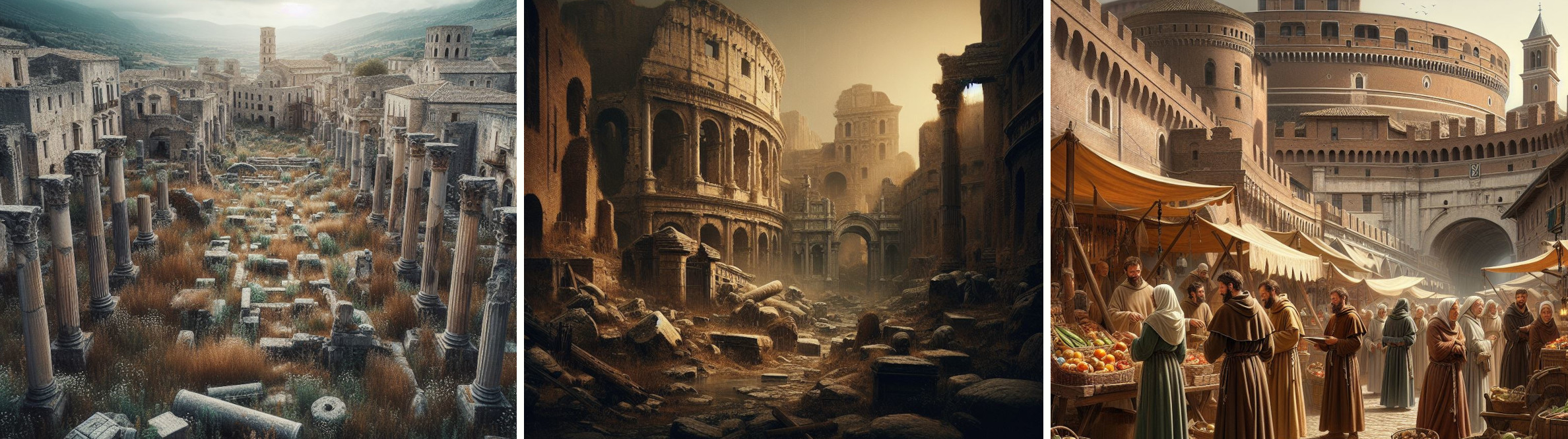 Le invasioni del V Secolo furono nulla rispetto allo stato cui fu ridotta Roma dopo la Guerra Greco-Gotica: la popolazione dell'Urbe passò in cinquant'anni da 250.000 a circa 30.000 abitanti.